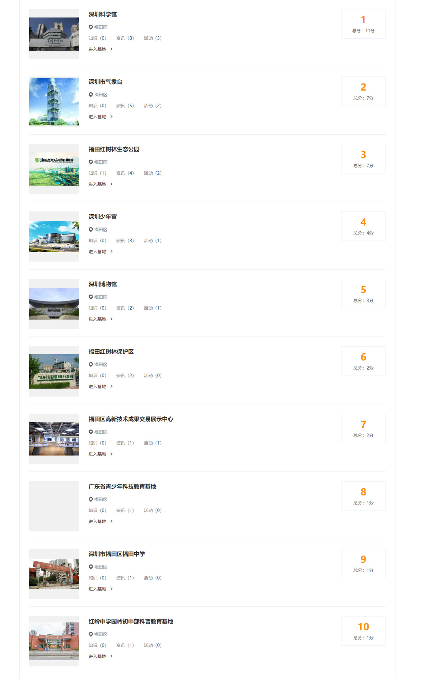 點擊查看完整福田區(qū)科普教育基地排名: