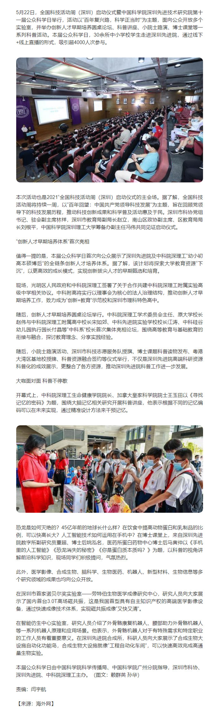 全國科技活動周(深圳)啟動儀式暨中國科學(xué)院深圳先進(jìn)技術(shù)研究院第十一屆公眾科學(xué)日舉行