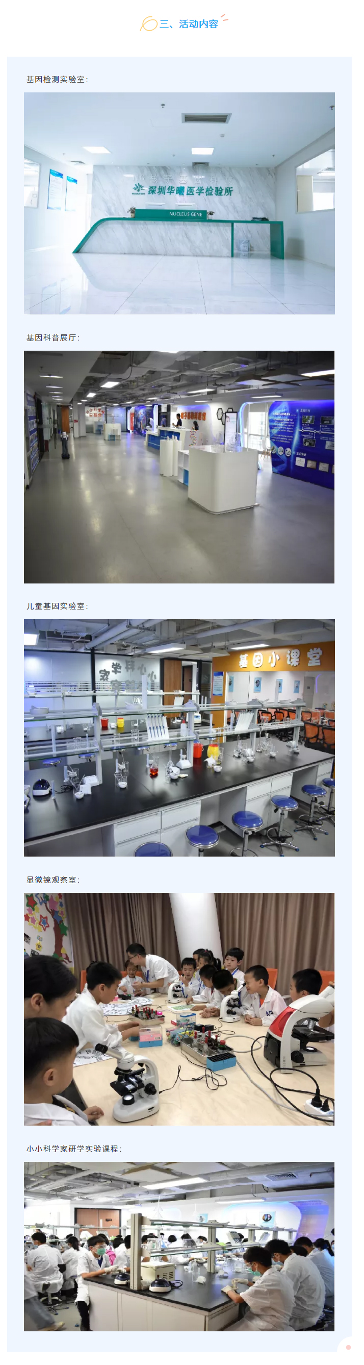 核子基因科普館,由深圳核子基因科技有限公司于2019年投資建設并投入運營,總接待面積近2000平方米,包括國家級基因檢測實驗室—華曦醫(yī)學檢驗所,最先進的基因檢測設備、顯微鏡觀察室、兒童基因科普實驗室等;致力于打造成為深圳乃至全國最專業(yè)的兒童生命科學科普及實驗場館,為學校及孩子們提供一個高品質(zhì)的第二課堂場所。