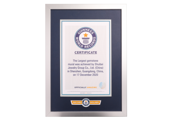 寶石墻于2020年榮獲吉尼斯世界紀錄認證,被認定為世界迄今“面積最大、珠寶種類最豐富”的寶石壁畫作品。不僅在中國絕無僅有,在世界范圍內(nèi)也是獨一無二。