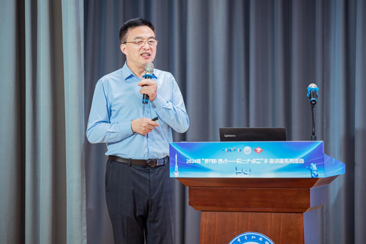 王憑慧院士,俄羅斯工程院外籍院士、國際宇航科學(xué)院通訊院士,現(xiàn)任南方科技大學(xué)航空航天技術(shù)創(chuàng)新中心主任、講席教授。講座現(xiàn)場,王院士從人類最喜歡的兩件事“仰望星空”和“飛行”談起,通過生動有趣的短視頻讓師生們體會到在不同的高度看到完全不一樣的世界,深入淺出地剖析了航天科學(xué)技術(shù)的重要性及基本原理,詳細介紹了航空、航天、航宇的區(qū)別與各類主要航天器,并專門科普了北斗衛(wèi)星系統(tǒng)的發(fā)展歷史、設(shè)計特點、功能應(yīng)用及其在我國航天事業(yè)發(fā)展中的重要作用。特別是北斗衛(wèi)星的定位和授時功能,意義重大,希望同學(xué)們從中認識到科技強國的深刻意義。王院士的講座富有趣味性和啟發(fā)性,通過問題形式啟發(fā)同學(xué)們思考,回答正確的同學(xué)還獲得院士親筆簽名的個人著作《問鼎蒼穹》,這讓原本高深復(fù)雜的航天科技知識變得易于理解和接受,體現(xiàn)了王院士“快樂學(xué)習(xí)”的理念。同學(xué)們踴躍舉手發(fā)言,熱情高漲。