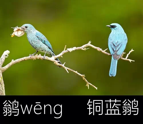 與多用單字的魚部不同,鳥部的字在用作物種名時常用二字。比如: