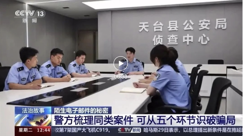 天臺(tái)縣公安局刑事偵查大隊(duì)民警 王昊:真正的公司老板剛好是在出差坐飛機(jī),下飛機(jī)之后他發(fā)現(xiàn)收到了很多扣款短信,才詢問(wèn)了財(cái)務(wù)這個(gè)情況,發(fā)現(xiàn)是財(cái)務(wù)被冒充的老板詐騙了。