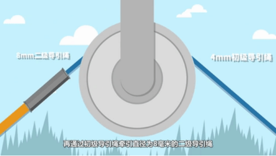 再以二級(jí)導(dǎo)引繩牽引直徑為18毫米的三級(jí)導(dǎo)引繩。