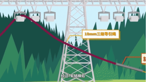 其間,尼龍繩、迪尼瑪繩、細(xì)鋼絲繩、粗鋼絲繩……各種材質(zhì)的引導(dǎo)繩會(huì)從細(xì)到粗相繼登場(chǎng),循序漸進(jìn)地牽引輸電導(dǎo)線“一飛沖天”。