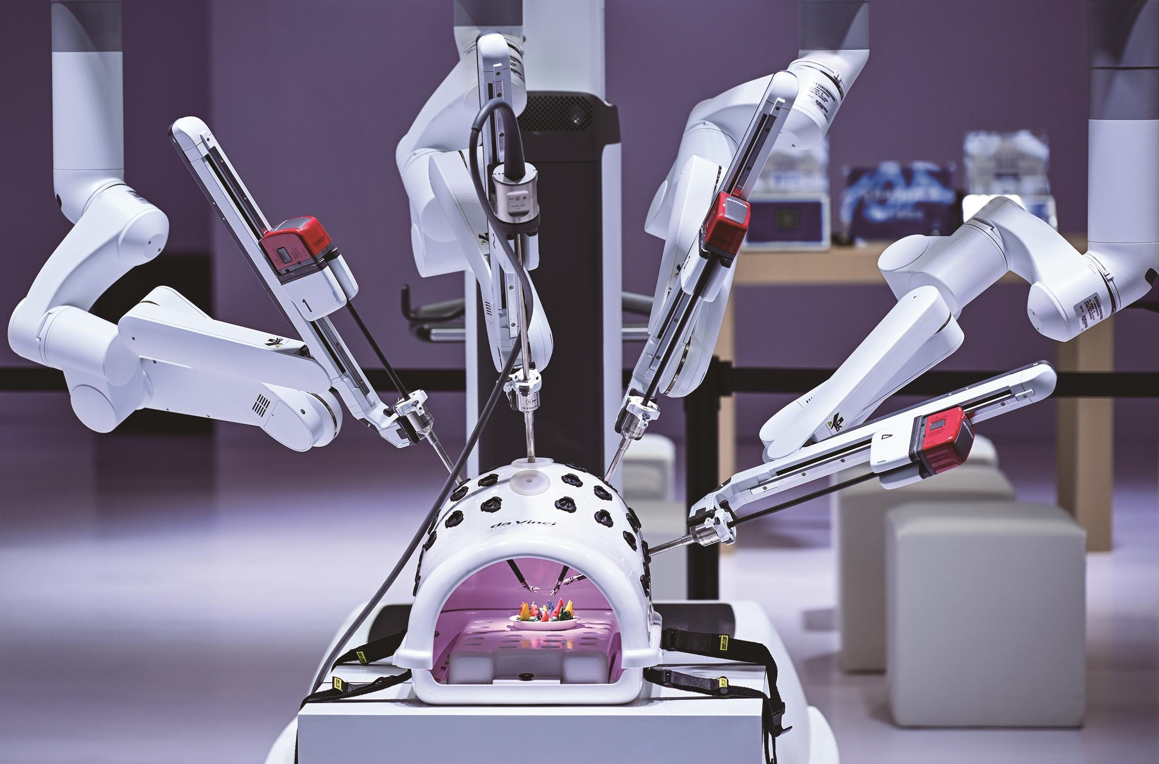 ▲圖為中國(guó)醫(yī)學(xué)裝備展覽會(huì)上,手術(shù)機(jī)器人正在現(xiàn)場(chǎng)演示。