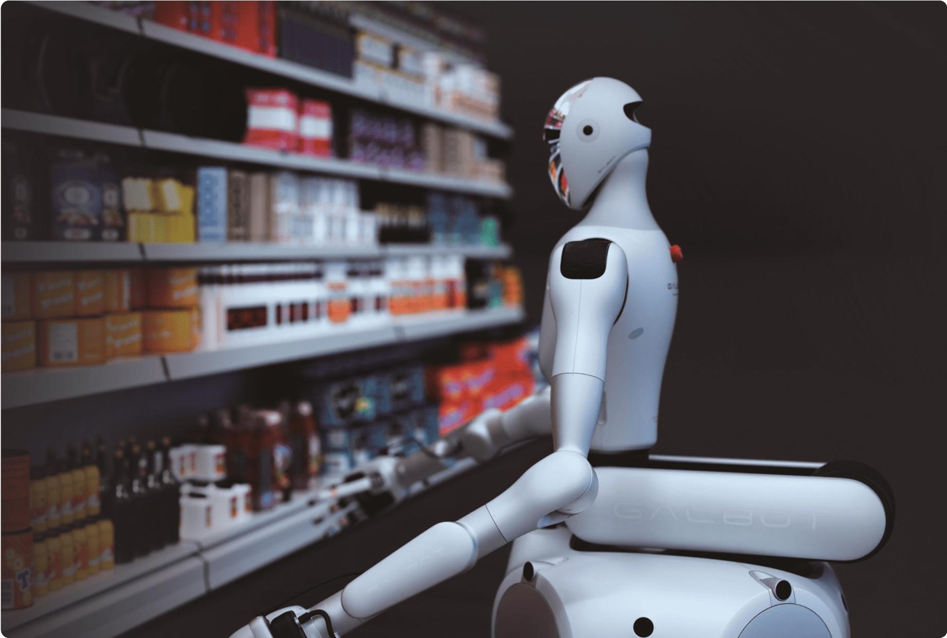 ▲圖為銀河用通服務(wù)型機(jī)器人在商超工作。