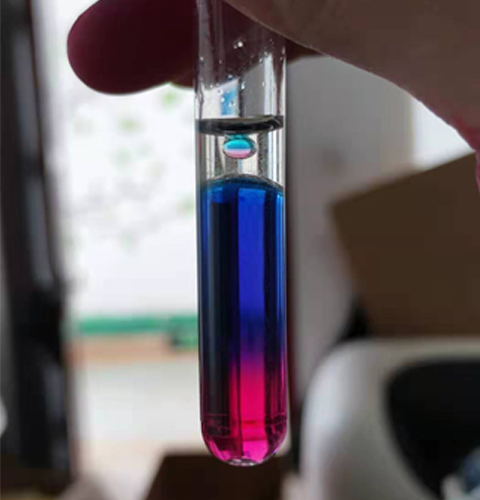 而圖上的實(shí)驗(yàn),是用了三種密度不同、顏色不同的液體組合起來(lái),形成了“雞尾酒”的分層狀態(tài),產(chǎn)生液體中的美。最重要的也是最難的操作是使氣泡懸浮在液體中,保持不上浮的狀態(tài),使我們實(shí)驗(yàn)出來(lái)的“雞尾酒”更加的美麗甚至不可思議!