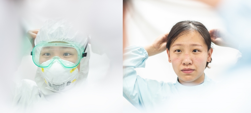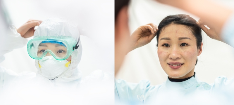 2020年年初,突如其來的新冠肺炎疫情籠罩著全國,在這場抗擊疫情的戰(zhàn)爭中,宜興市中醫(yī)院發(fā)熱門診的醫(yī)護(hù)人員始終堅(jiān)持在一線,這是一組她們的群體肖像,摘下口罩的一刻,一條條殷紅的印痕,爬上你秀美的臉龐,那是連續(xù)奮戰(zhàn)的記號,那是戰(zhàn)“疫”的痕跡,那是天使的印記。