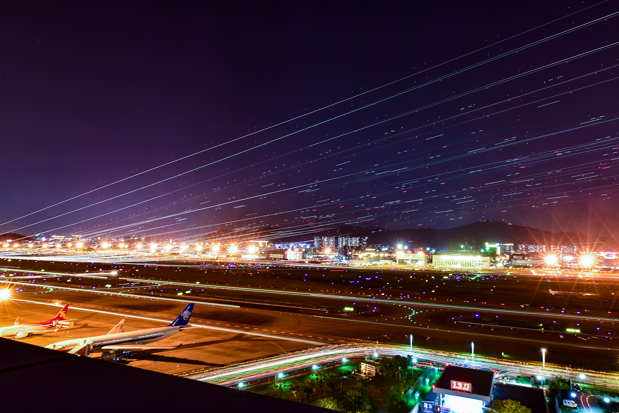 通過(guò)對(duì)44架飛機(jī)起飛光軌的堆棧效果,可以驚奇地發(fā)現(xiàn)每一架飛機(jī)的起飛軌跡和爬升坡度是不一樣的,不同的機(jī)型閃燈方式在夜空中劃過(guò)的線條也是不一樣的,通過(guò)對(duì)比的手法在一張圖里清楚的勾勒出44架飛機(jī)帶給大家與眾不同的視覺(jué)享受。