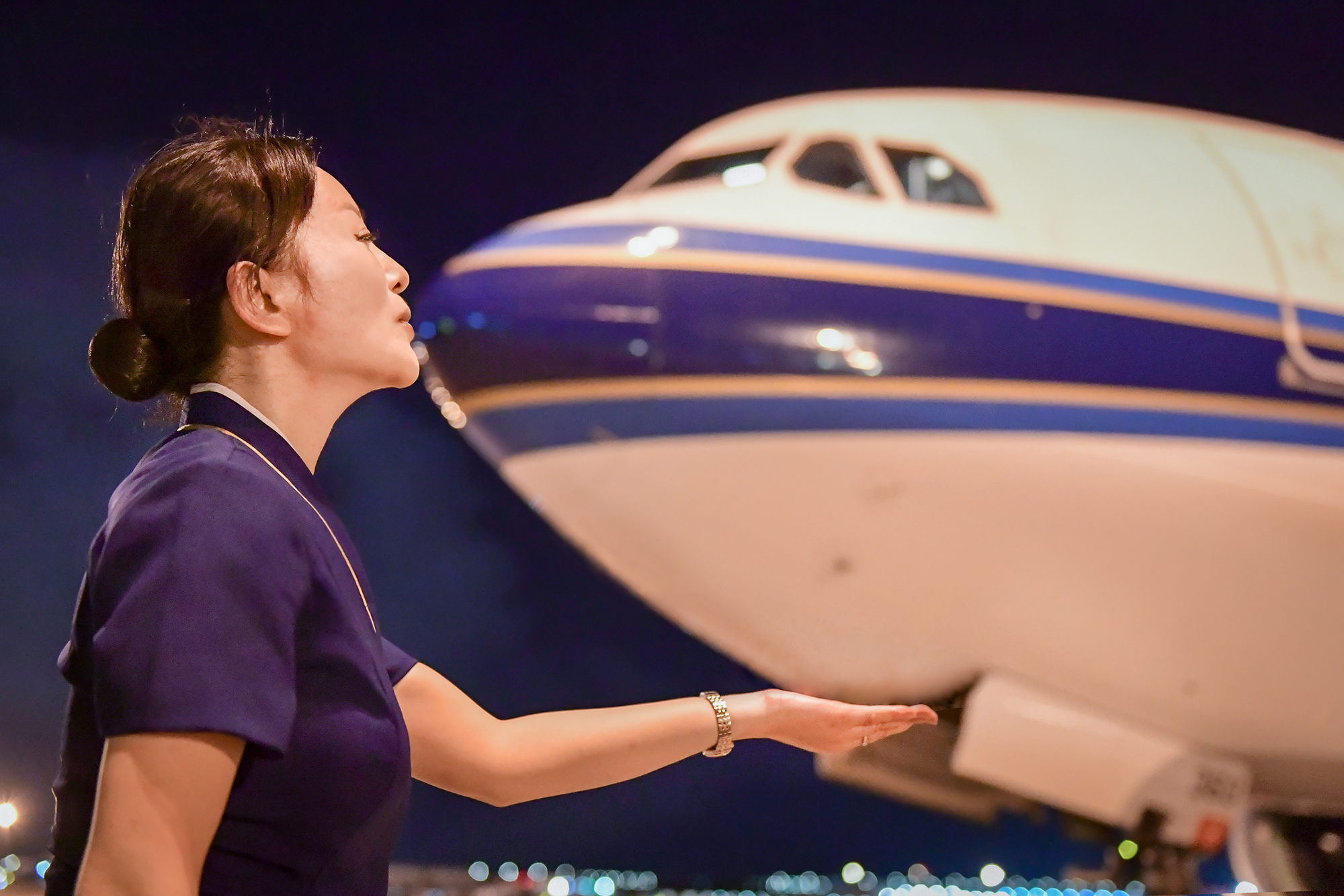 紅顏依舊,青絲芳華——南航深圳分公司主任乘務(wù)長(zhǎng)劉繼紅姐姐安全飛行三十載收官之際與心愛(ài)的飛機(jī)親吻告別。