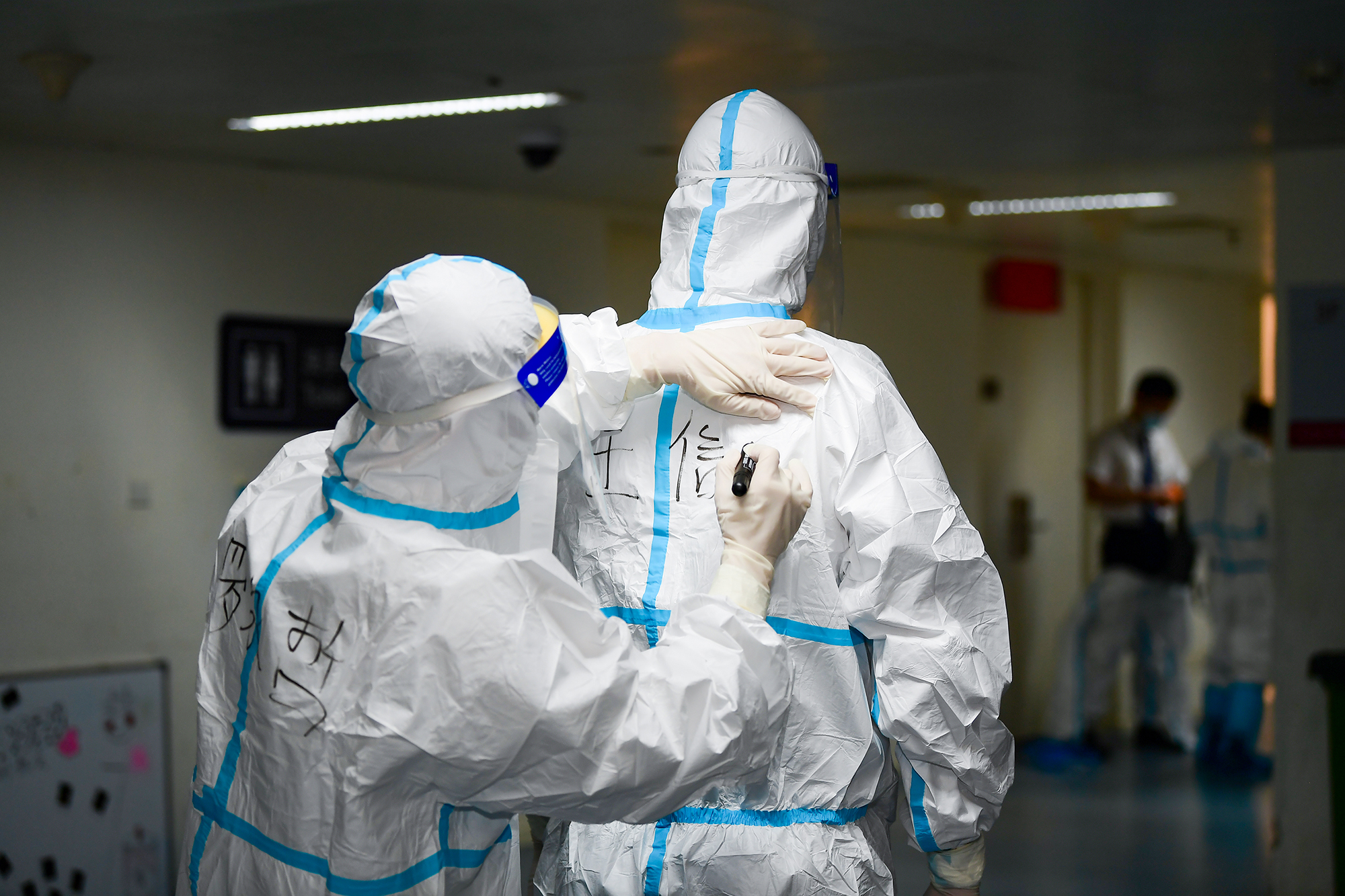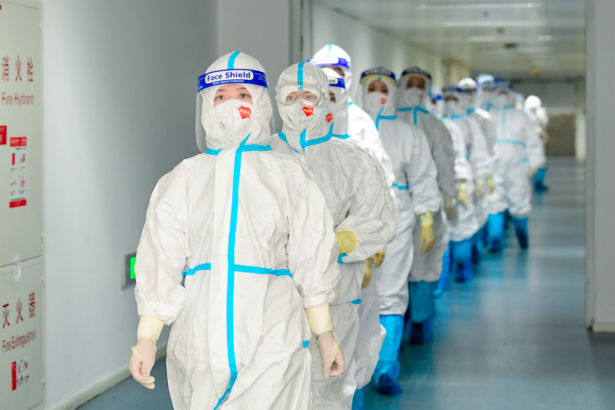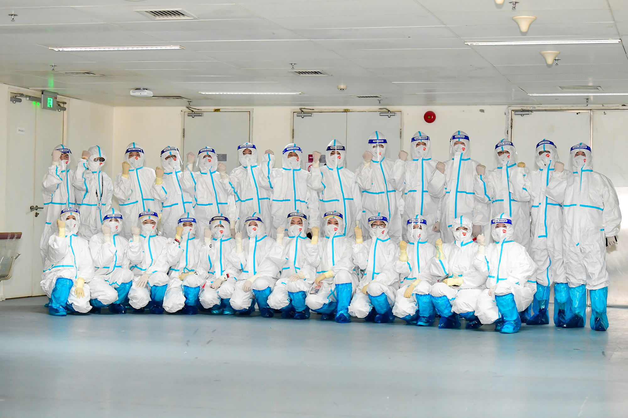 深航國際值機人員在執(zhí)行國際進港航班保障任務前,穿戴好密閉的防護服,可想而知在接下來的幾個小時中,不能喝水和上洗手間,高溫下的層層防護又令人汗流浹背,但他們就如全副武裝的戰(zhàn)士出征前一樣充滿自信。